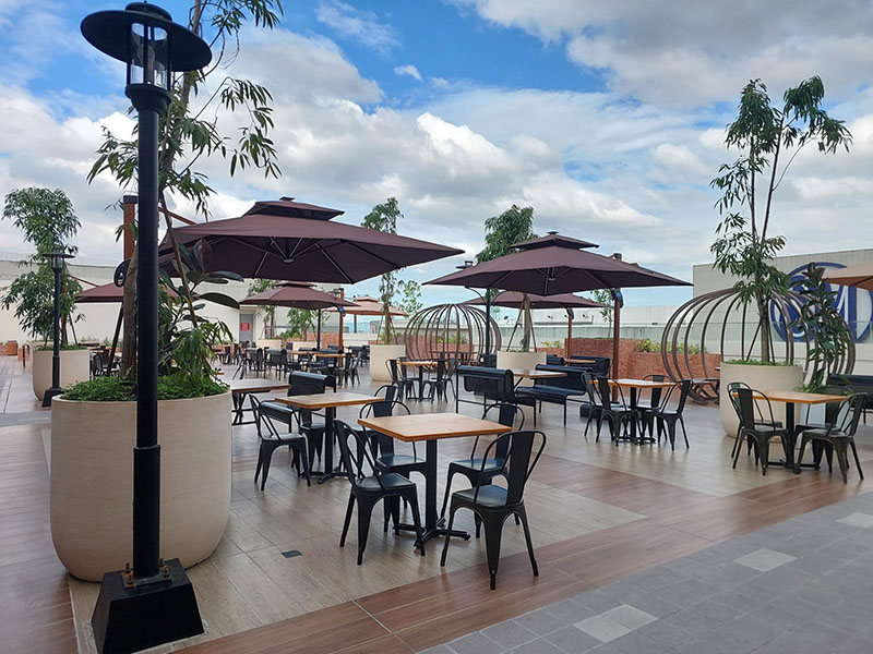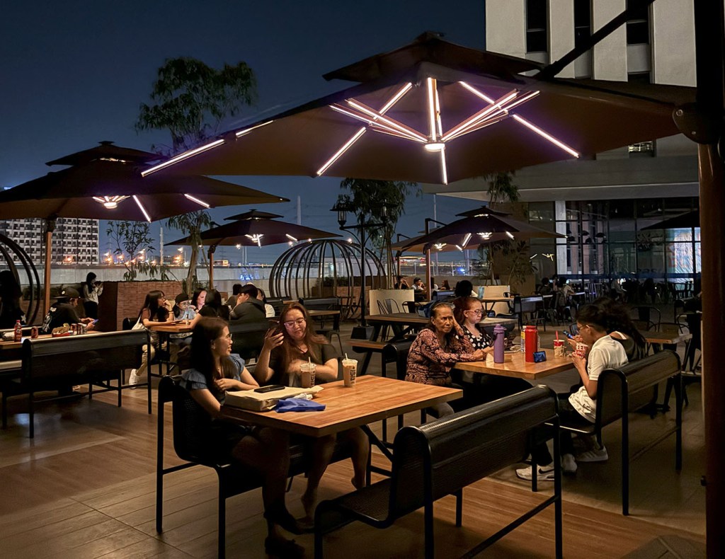 Integrating sustainability, SM City Bicutan offers solar-powered parasols with nighttime illumination in its Sky Garden.
