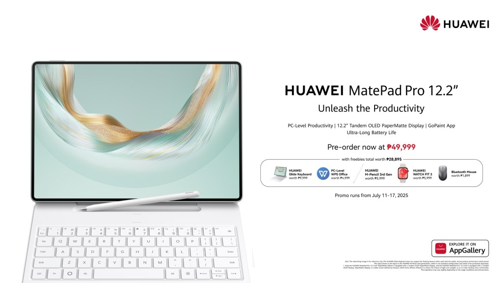 The HUAWEI MatePad Pro 12.2” (2025) is now available for pre-order at PHP 49,999 on Shopee, Lazada, TikTok Shop, the HUAWEI Online Store, and HUAWEI Experience Stores nationwide. The pre-order period runs from July 11 to July 17.