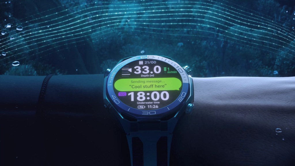 Its 1.5-inch LTPO AMOLED display delivers 3500 nits of brightness, offering unmatched visibility even in sunlit or underwater conditions. Using sonar-based technology, the HUAWEI WATCH Ultimate 2 revolutionizes underwater communication, letting divers send texts, emojis, or SOS alerts up to 60 meters away, replacing tank taps and hand signals with clear, instant warnings. This feature ensures safer, more connected dives without external gear. More than a smartwatch, it’s a vital lifeline for the deep.