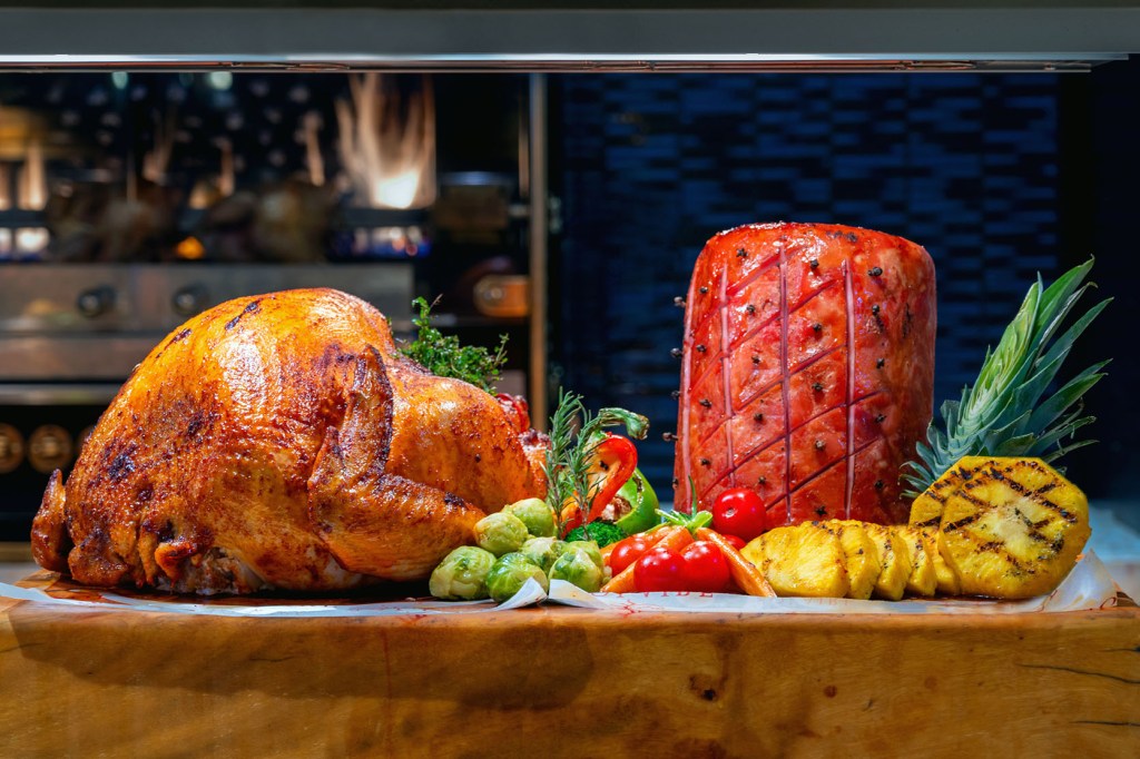 Relish in the abundance of a Thanksgiving Dinner Buffet at Fresh. Indulge in a decadent selection of dishes, featuring delicate carvings of herb-roasted turkey, honey-glazed ham, creamy mashed potatoes, and fresh cranberry sauce. Make it a truly spectacular night!